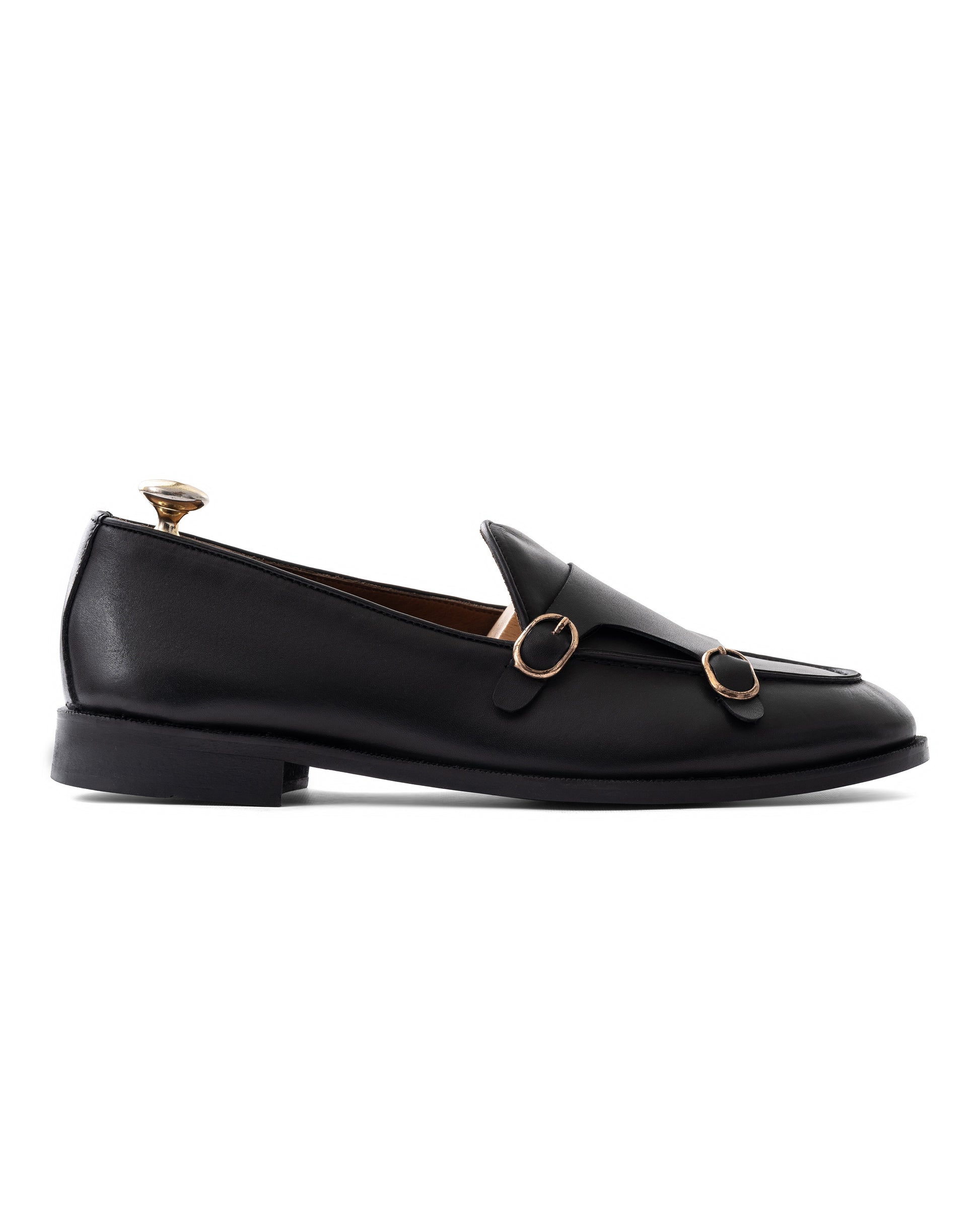 Elevate your formal wardrobe with these sophisticated Double Monk Loafers in classic black. Crafted with precision, the dual monk strap design delivers both refined aesthetics and secure fit, making them ideal for business meetings, formal events, or elevated everyday wear. The sleek black leather construction ensures versatility across multiple occasions while maintaining a polished appearance. These loafers combine traditional craftsmanship with modern comfort, offering the professional edge every discerning gentleman requires. A timeless investment piece that transitions seamlessly from office to evening engagements.